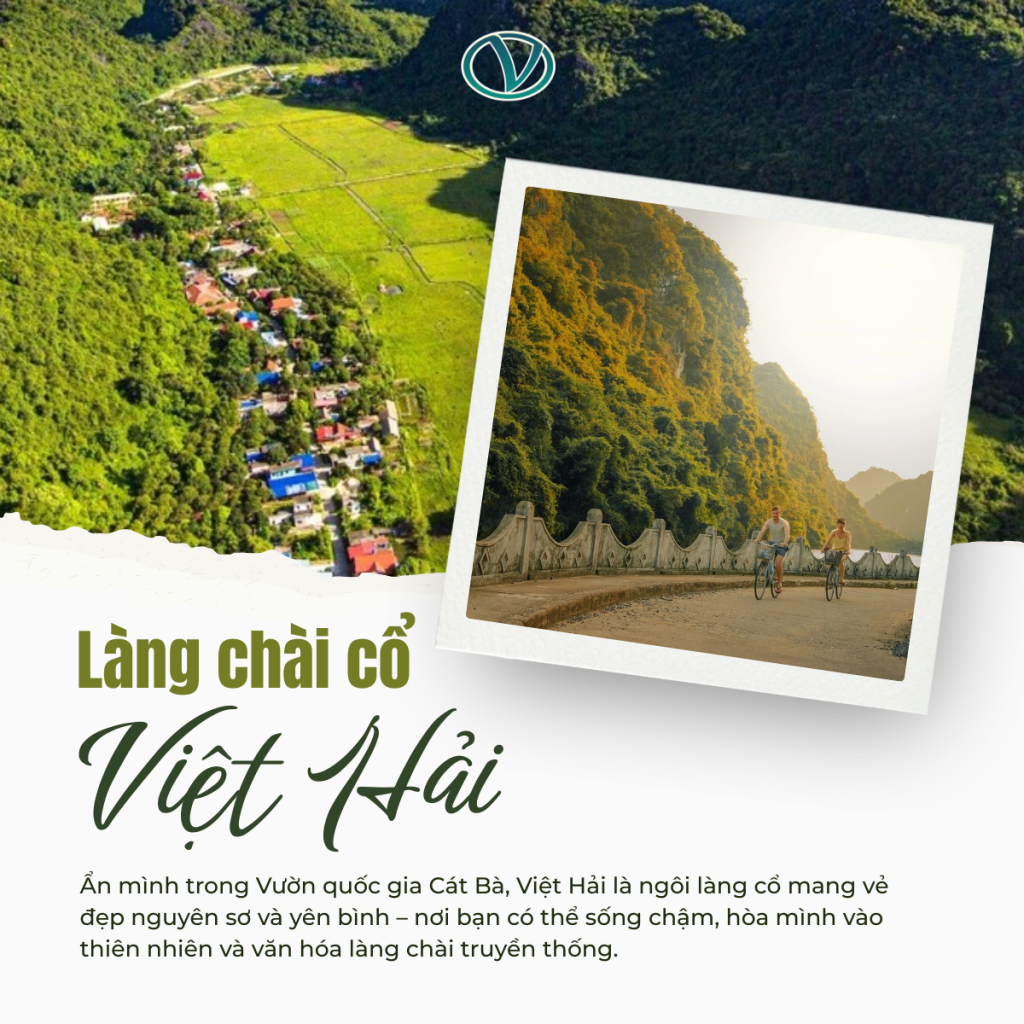 Ẩn mình giữa thung lũng sâu trong Vườn quốc gia Cát Bà (Hải Phòng), làng cổ Việt Hải là một trong những điểm đến hoang sơ và độc đáo bậc nhất trên đảo ngọc. Bao quanh bởi núi rừng nguyên sinh và biển cả mênh mông, Việt Hải như một “ốc đảo xanh” tách biệt hoàn toàn với nhịp sống ồn ào của phố thị – nơi bạn có thể chậm lại, hít thở không khí trong lành, và hòa mình vào thiên nhiên thuần khiết.