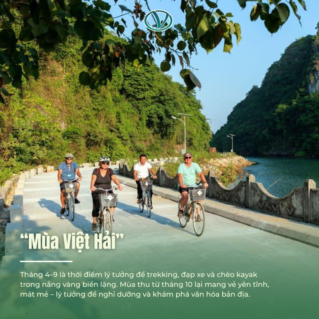 Thời điểm đẹp nhất để ghé thăm làng cổ Việt Hải là mùa hè, từ tháng 4 đến tháng 9. Lúc này, thời tiết nắng ráo, biển lặng, rất thích hợp để tham gia các hoạt động ngoài trời như trekking xuyên rừng, đạp xe, chèo kayak hay khám phá các hang động và đỉnh núi trong Vườn quốc gia Cát Bà.