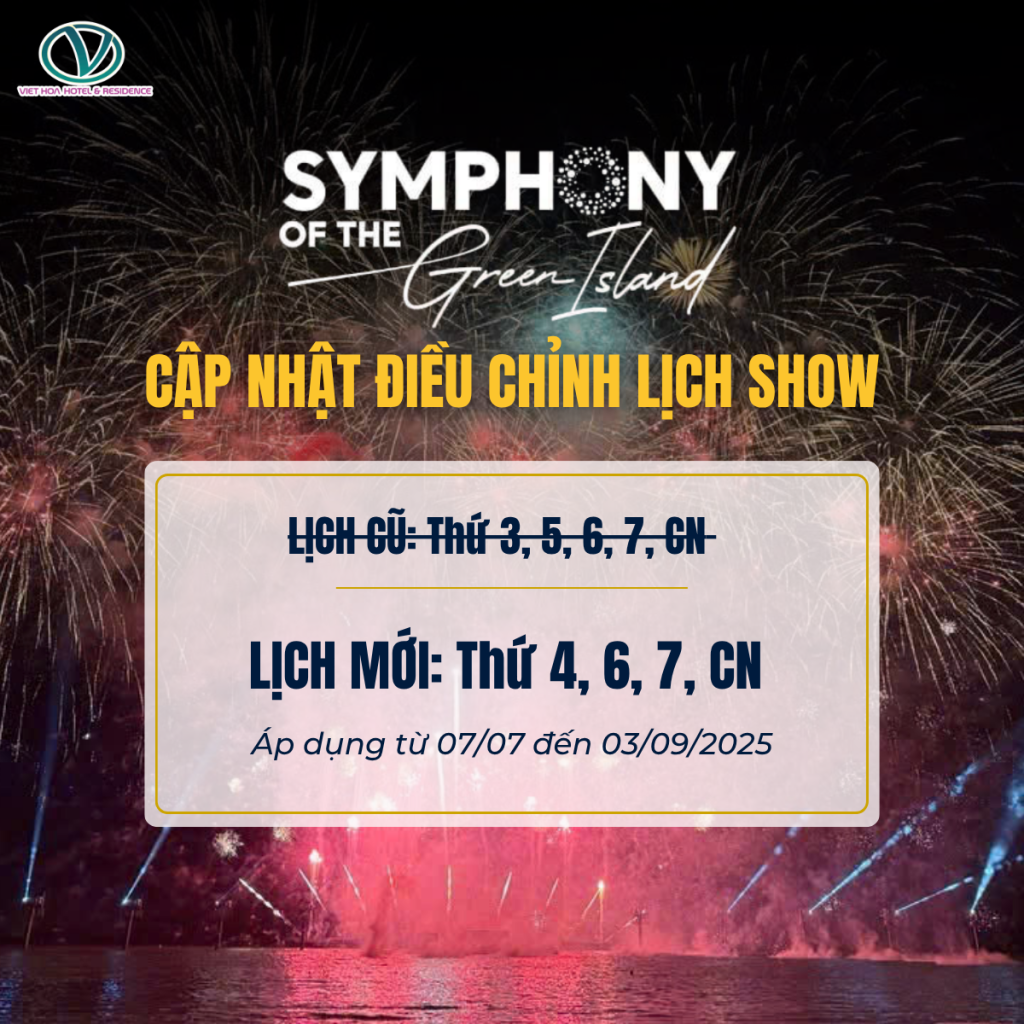 Lịch trình mới của chương trình “Bản giao hưởng Đảo Xanh” sẽ được áp dụng chính thức từ ngày 07/07 đến ngày 09/03/2025 , với các màn trình diễn vào Thứ Tư, Thứ Sáu, Thứ Bảy và Chủ Nhật liên tục hàng tuần.