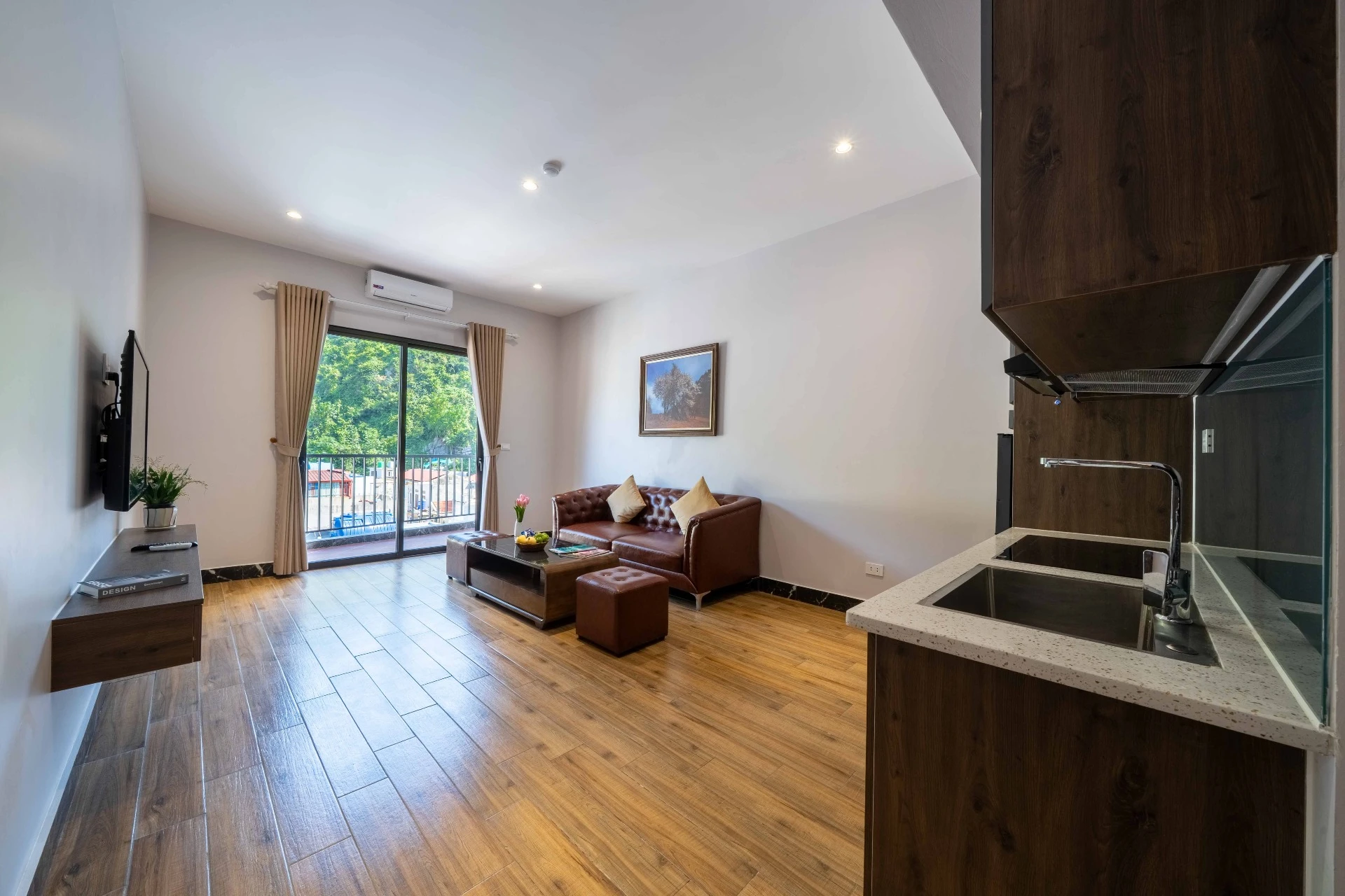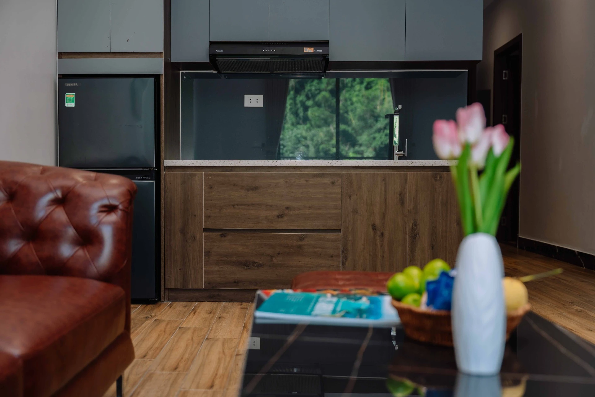 Tiện nghi bếp hiện đại: Được trang bị tủ lạnh lớn, bếp nấu, máy hút mùi và bồn rửa, cho phép bạn tự tay chuẩn ...