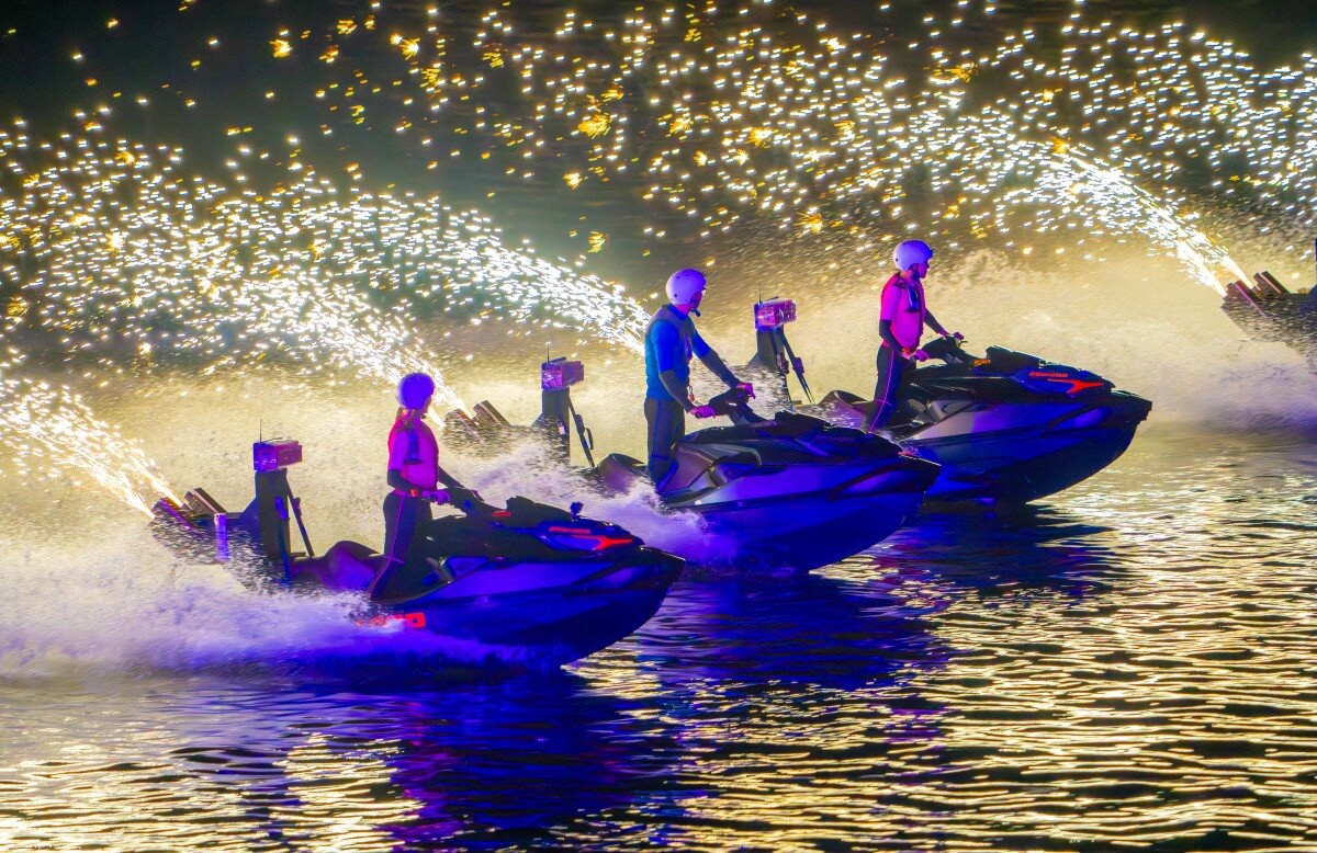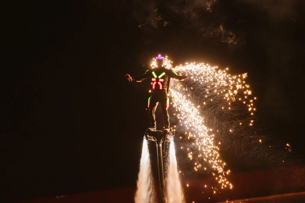 Jetsurf & Flyboard đồng diễn – vũ điệu ánh sáng trên biển: Show diễn quy tụ gần 40 vận động viên quốc tế, bao gồm cả chuyên gia jetski, flyboard và jetsurf. Các màn đồng diễn bay lướt qua mặt biển, kết hợp kỹ thuật nhào lộn LED và hiệu ứng ánh sáng đã tạo nên cảnh tượng như “vũ hội ánh sáng” giữa đại dương.